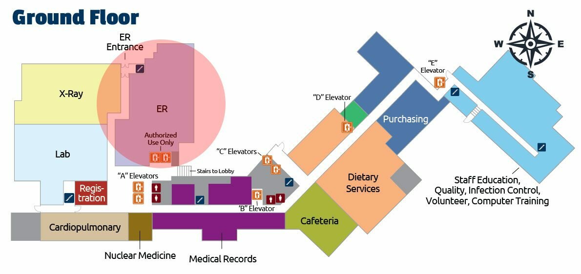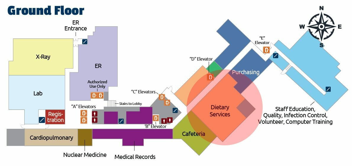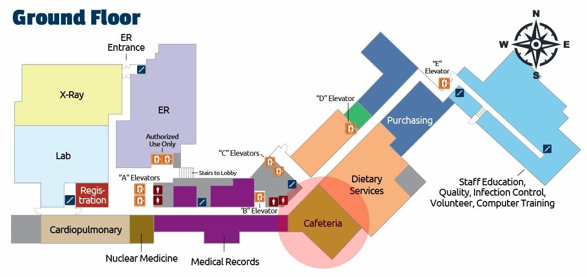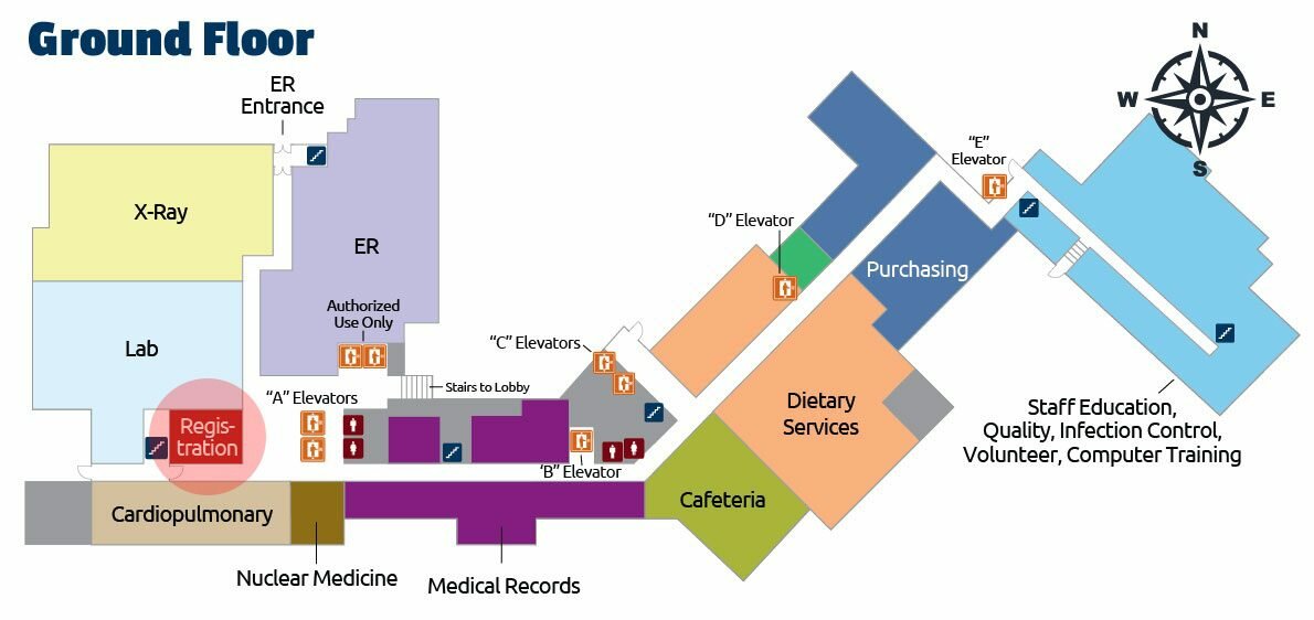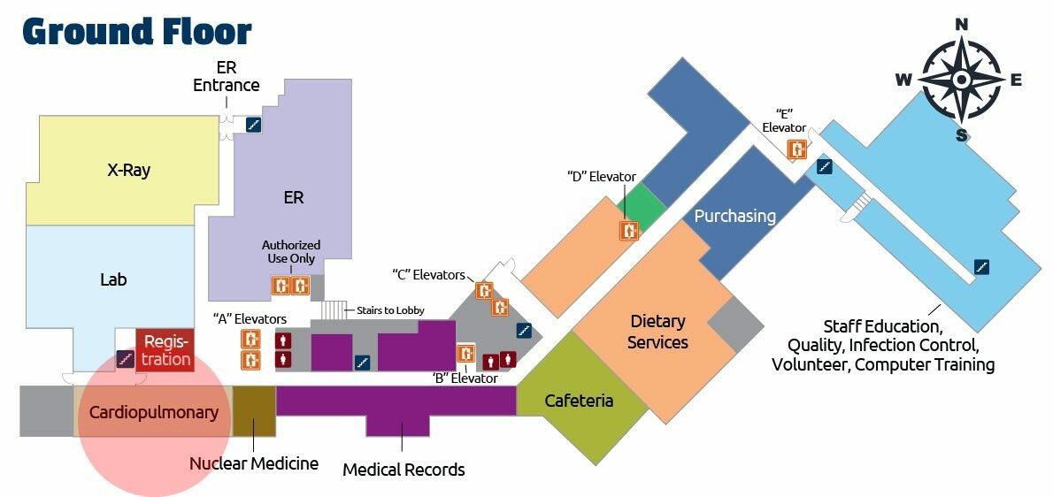 - Cardiopulmonary will be to your left after the “A” Elevators.