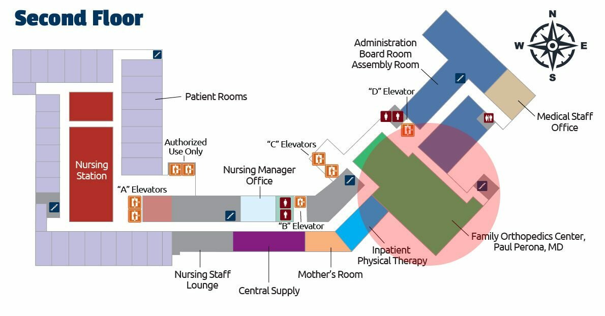 - The Family Orthopedics Center will be across the hall when you step out of the elevators.