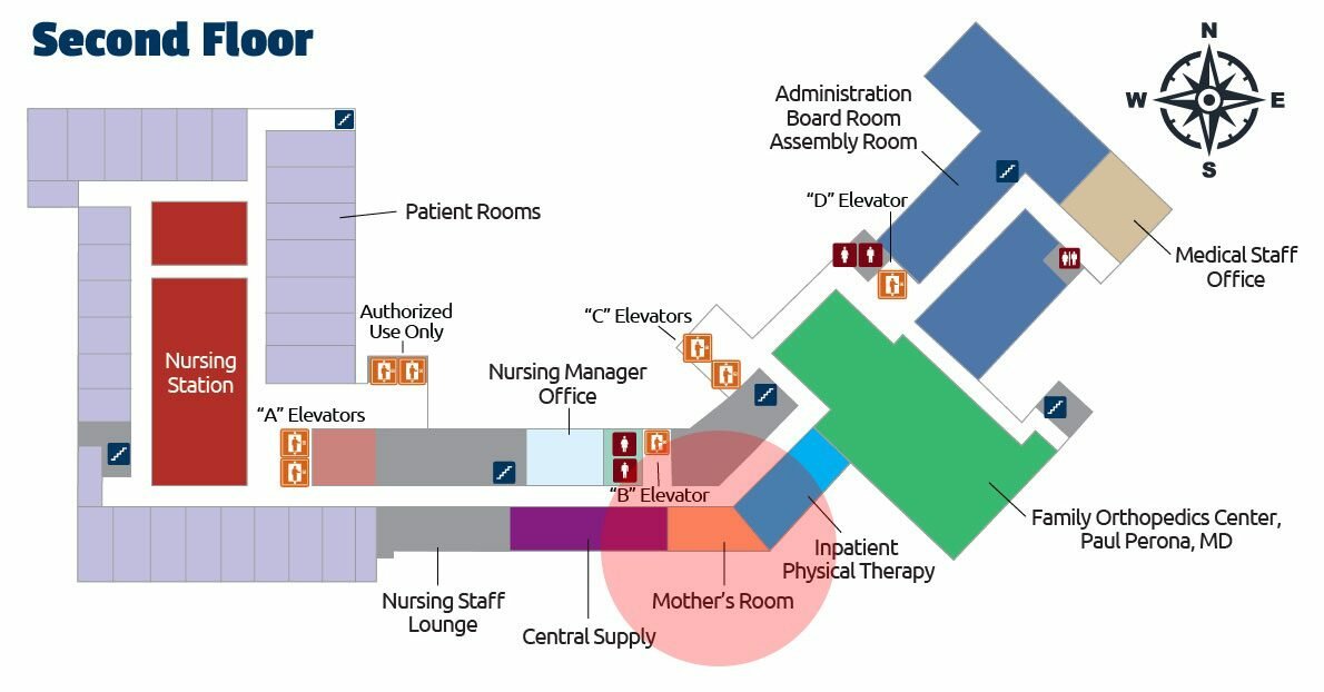 Located on the Second Floor of the St. Margaret’s Hospital, the Mother’s Room can be found in the West end of our building.