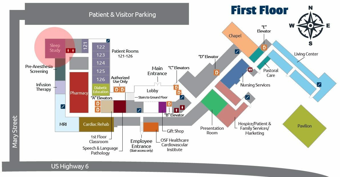 Located on the First Floor of the St. Margaret’s Hospital, Sleep Study can be found in the West end of our building.