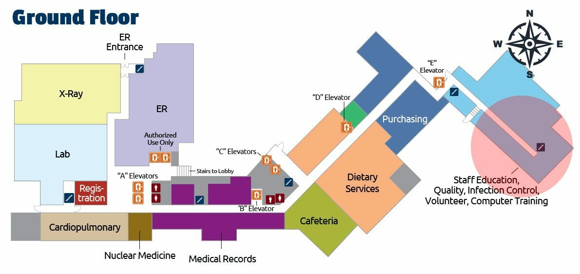 Located on the Ground Floor of the St. Margaret’s Hospital, Staff Education, Quality, Infection Control, Volunteer, Computer Training can be found at the West end of our building.