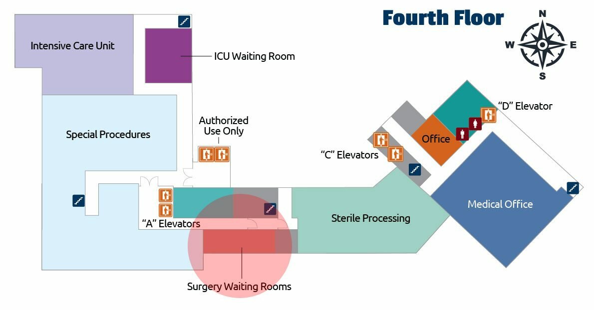 Located on the Fourth Floor of the St. Margaret’s Hospital, the Surgery Waiting Rooms can be found in the West end of our building.