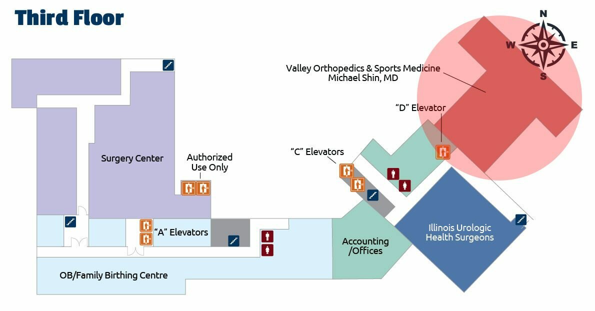 Located on the Third Floor of the St. Margaret’s Hospital, Valley Orthopedics & Sports Medicine, Michael Shin, MD can be found at the East end of our building.