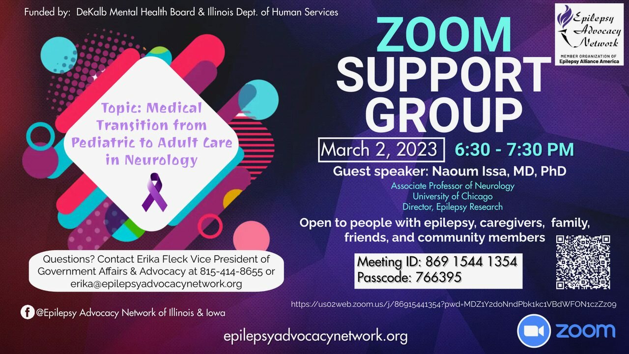 For other epilepsy support groups in North-Central Illinois (running through the Epilepsy Advocacy Network in 2022), click here.