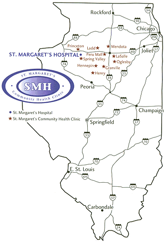 Conveniently located throughout the Illinois Valley, St. Margaret’s Community Health Clinics provide comprehensive health care services, including: diagnosis and care of illness; work, school and sport exams; prenatal and obstetrical care; gynecological exams; newborn and pediatric care; minor surgery; fracture care; laboratory services; physical therapy; electrocardiogram (EKG); ear testing (audiograms); and Occupational Health Services such as pre-employment exams, return to work exams, annual exams and executive exams.